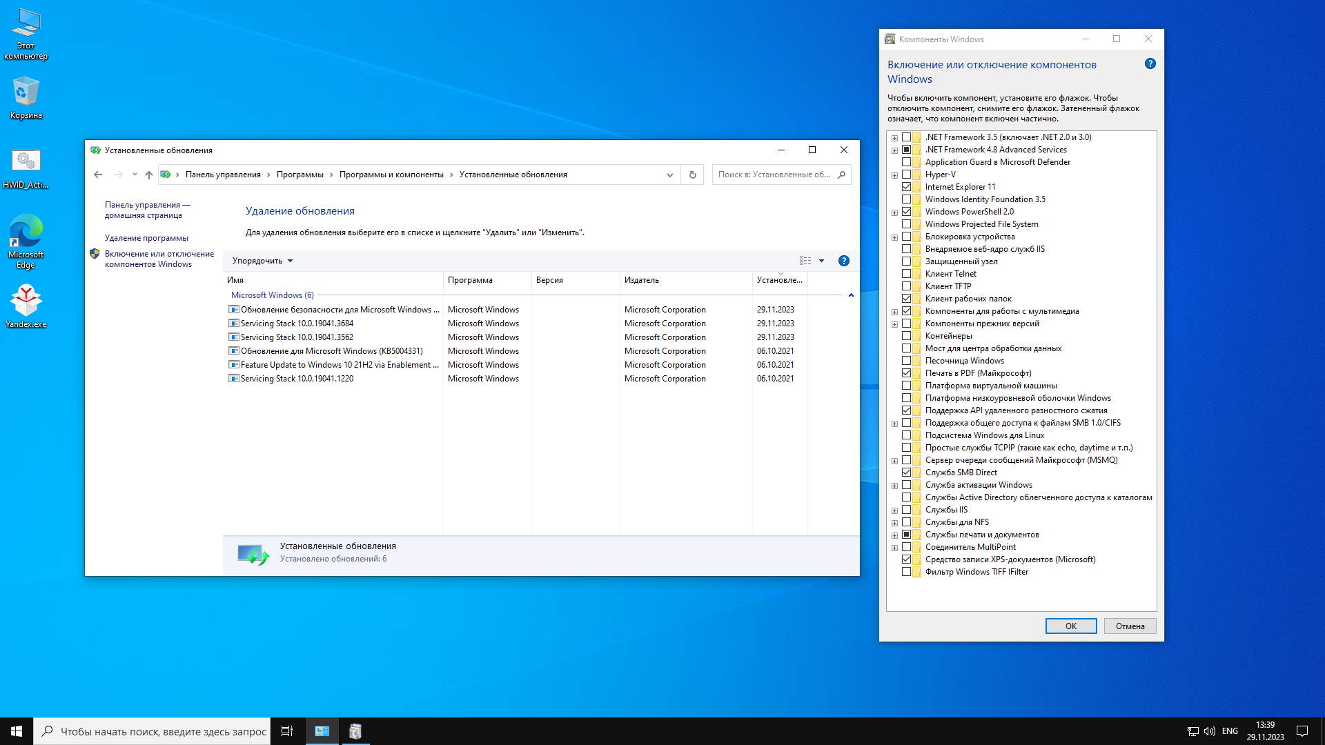 -Набор «Компонентов» Виндовс не менялся – всё по стандарту. Никакие устаревшие компоненты (типа DirectPlay или Framework 3.5 не добавлялись. Захотите – включите их сами).