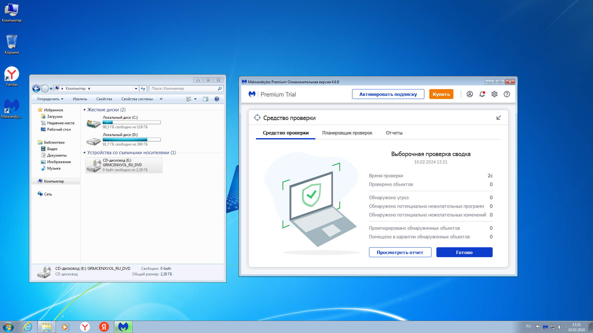 Встроен Яндекс.Браузер, ведь стандартным IE уже почти никто не пользуется, а Яндекс.Браузер прекрасно адаптирован для самых разнообразных сервисов Рунета. Если вы предпочитаете другой браузер, то Яндекс можно в несколько кликов деинсталлировать стандартным образом – в «Программах и компонентах». Встроена официальная версия (а не какой-то сомнительный репак), браузер надежный и очень быстрый для сёрфинга.