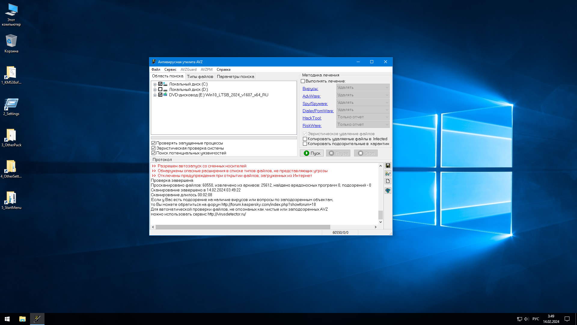 Конечно, возможны комменты наподобие «зачем обновлять и т.д.» - но оригинальная сборка Лекса будет обновляться довольно долго (такова особенность LTSB редакции). Кроме того, после замены активатора сборка стала на 100% безопасной – судя по отчетам антивирусов. Готовая, обновленная по февраль 2024 год сборка LTSB – очень даже востребованная система для многих пользователей. В ISO образах допускается установщик браузера и некоторые пользовательские изменения по умолчнию для браузера Chrome, каждый может без проблем изменить настройки браузера на свои предпочтительные. Все авторские сборки перед публикацией на сайте, проходят проверку на вирусы. ISO образ открывается через dism, и всё содержимое сканируется антивирусом на вредоносные файлы.
