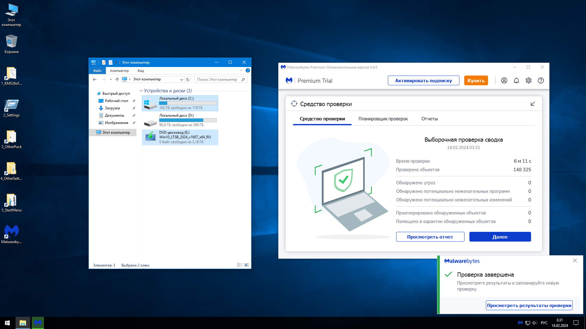 -После того, как сборка будет полностью установлена и настроена, рекомендуем выключить Windows Update. Свежий билд 2024 года еще долго не устареет (с точки зрения стабильности и системной безопасности).
