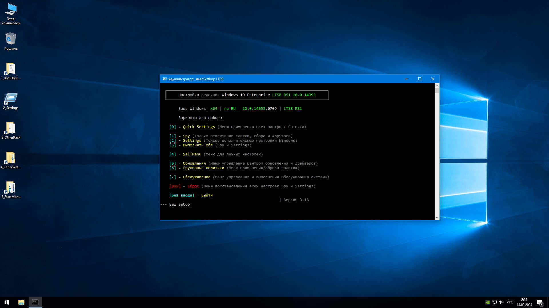 Версия: знаменитая сборка Windows 10 Enterprise LTSB 1607 (14393.6709) с обновлениями 2024