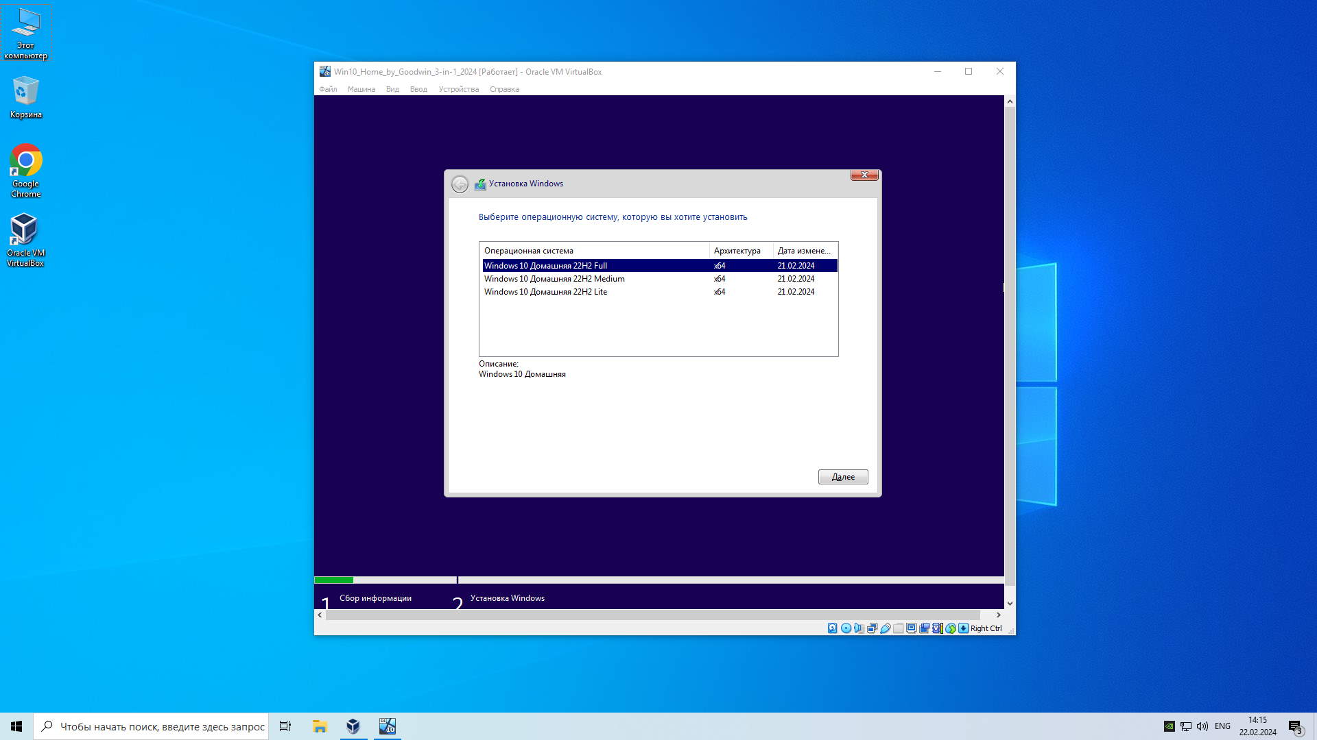 Параметры образа Windows 10 x64 Home (19045.4046-22H2) 3в1 ISO by GoodWin 2024: