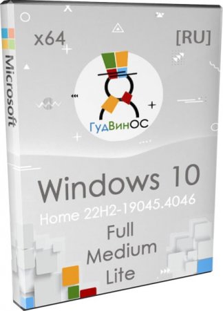 Новая версия скачать Windows 10 x64 Home (19045.4046-22H2) 3в1 ISO by GoodWin 2024 через торрент.В предложенном образе сразу 3 версии: Full – (почти полный функционал и включенный Защитник), Medium (в меру обрезанная версия с Магазином и выключенным Защитником) и Lite (самая обрезанная версия). Сборка сделана из февральского оригинала Windows 10. Рекомендованный вариант – Medium. Она хорошо оптимизирована, освобождена от явно лишнего мусора, при этом имеет вполне надежную конфигурацию без риска. Full версия – еще более надежна, в ней почти ничего не удалено, но из-за включенного Защитника она не такая легкая, как Medium. Конечно, это очень хорошо, когда у пользователя изначально есть выбор. Есть и другие преимущества сборок Гудвина: его идеально чистые (в плане отсутствия сомнительного ПО), снабжены игровыми дополнениями, стабильны и удобны в работе. Предложенная версия 3-в-1 (специально для нашего сайта windowsobraz.com) будет особенно хороша для дома, игр и развлечений, т.к. создана на основе Home редакции. И, конечно же, сборка будет удобна для тех, кто привык пользоваться Google Chrome, ведь он предложен в каждой из этих систем вместо Edge. Если вам захочется установить сборку без этого браузера, то простейшую инструкцию для этого вы найдете ниже в описании. На сайте автора сборки время от времени появляются свежие версии, которые вы всегда можете обсудить прямо на первоисточнике. А этот релиз 3-в-1 подготовлен специально автором сборки для нашего сайта. Каждая из предложенных версий не нуждается в дополнительных настройках, а драйвера устанавливаются автоматически.