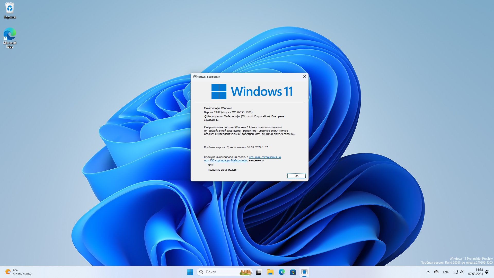 Версия: оригинал Windows 11 предварительная DEV версия (26058.1100) 24H2