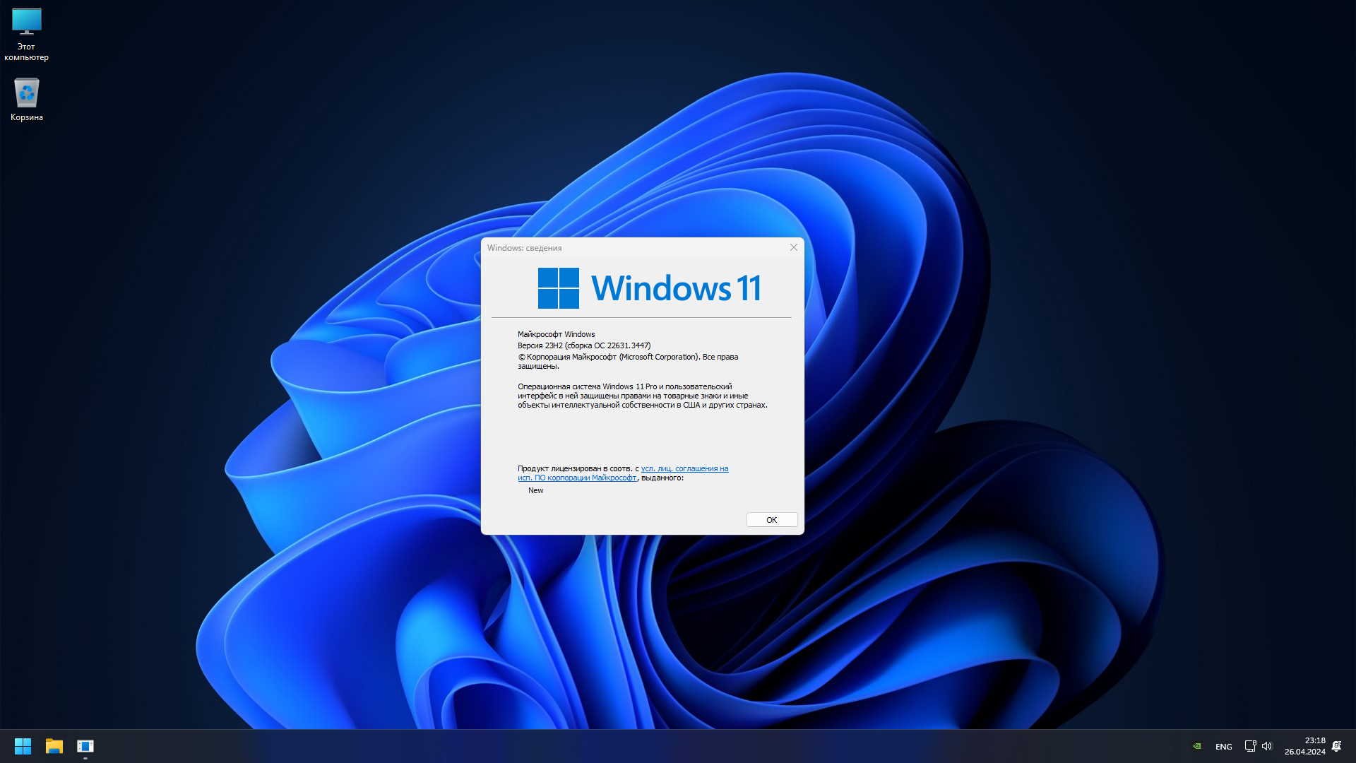 Windows 11 Pro 23H2 надежная сборка без лишнего хлама 22631.3447