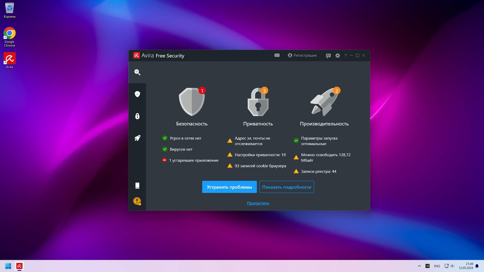 Выключена телеметрия