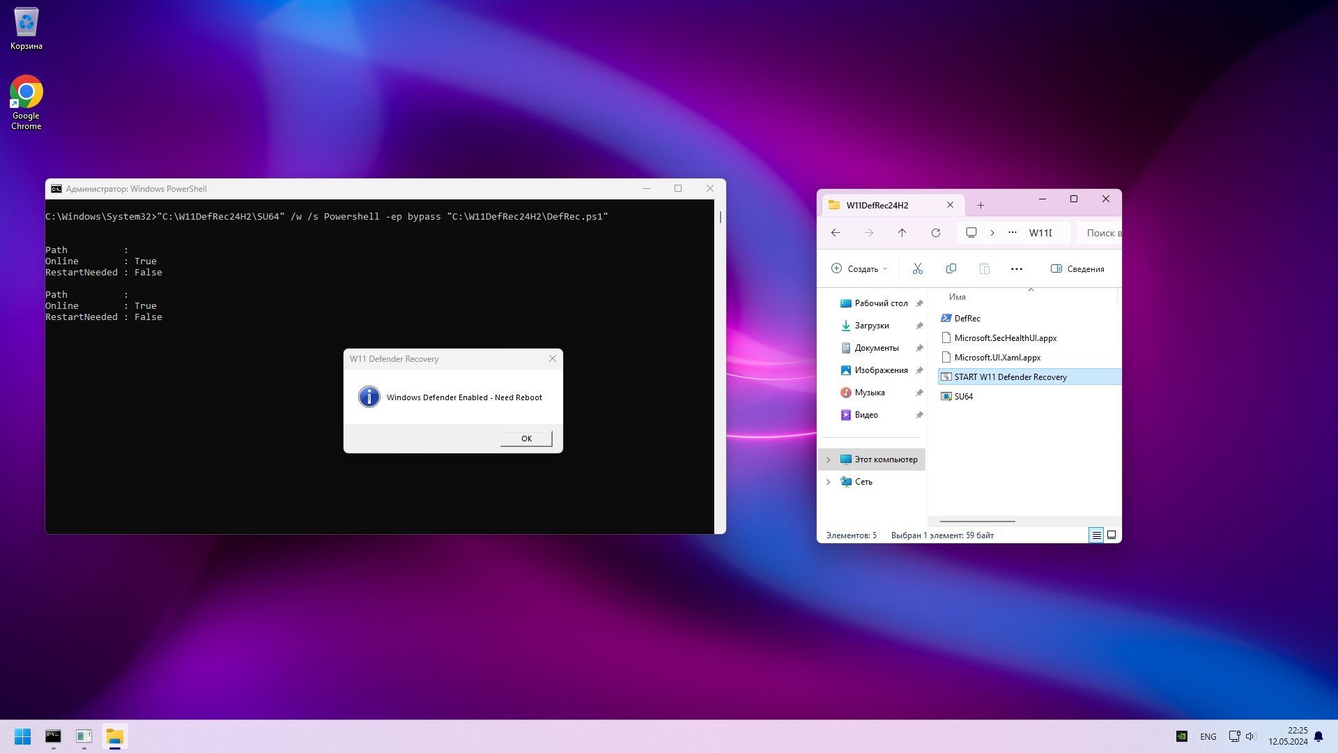 -Отключен Защитник/SmartScreen. При помощи скрипта (который в раздаче) легко включаете Defender обратно. Работоспособность этого скрипта by geepnozeex была проверена в ходе тестов, и Защитник действительно возвращается на место (см. скрины). На некоторых других сборках Win 11 (но далеко не на всех из них) этот скрипт может тоже успешно включить Защитника.