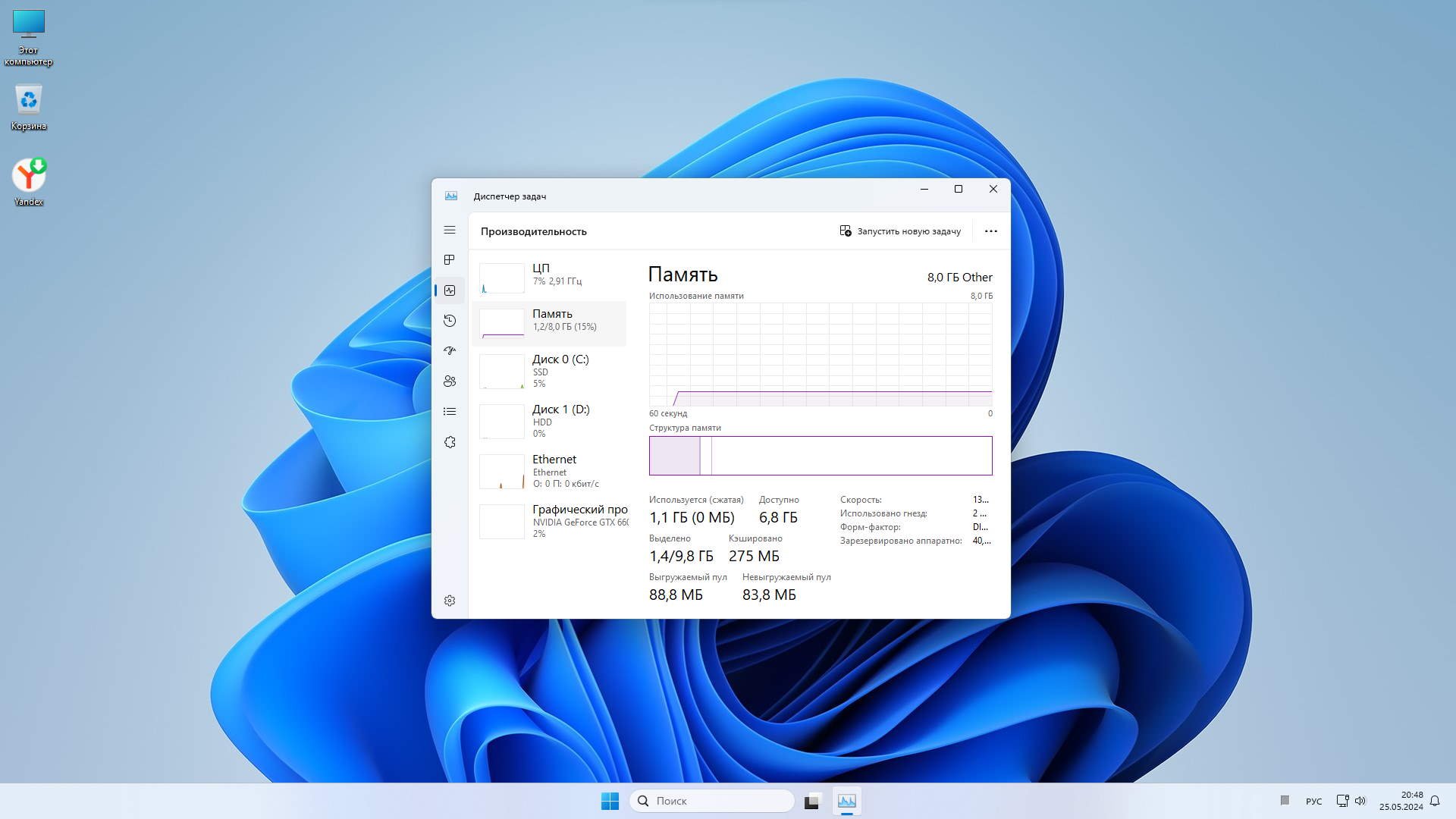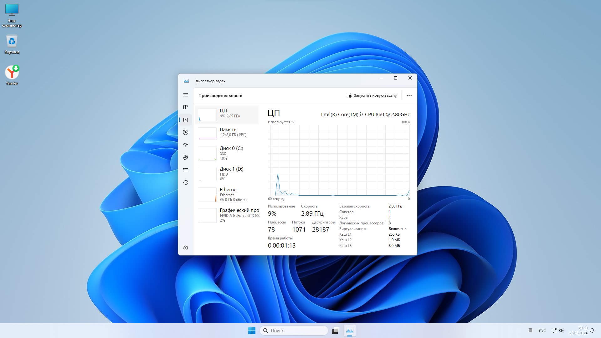-Бесполезный твик группировки процессов svchost не применялся, поэтому в Диспетчере задач их отображается больше.