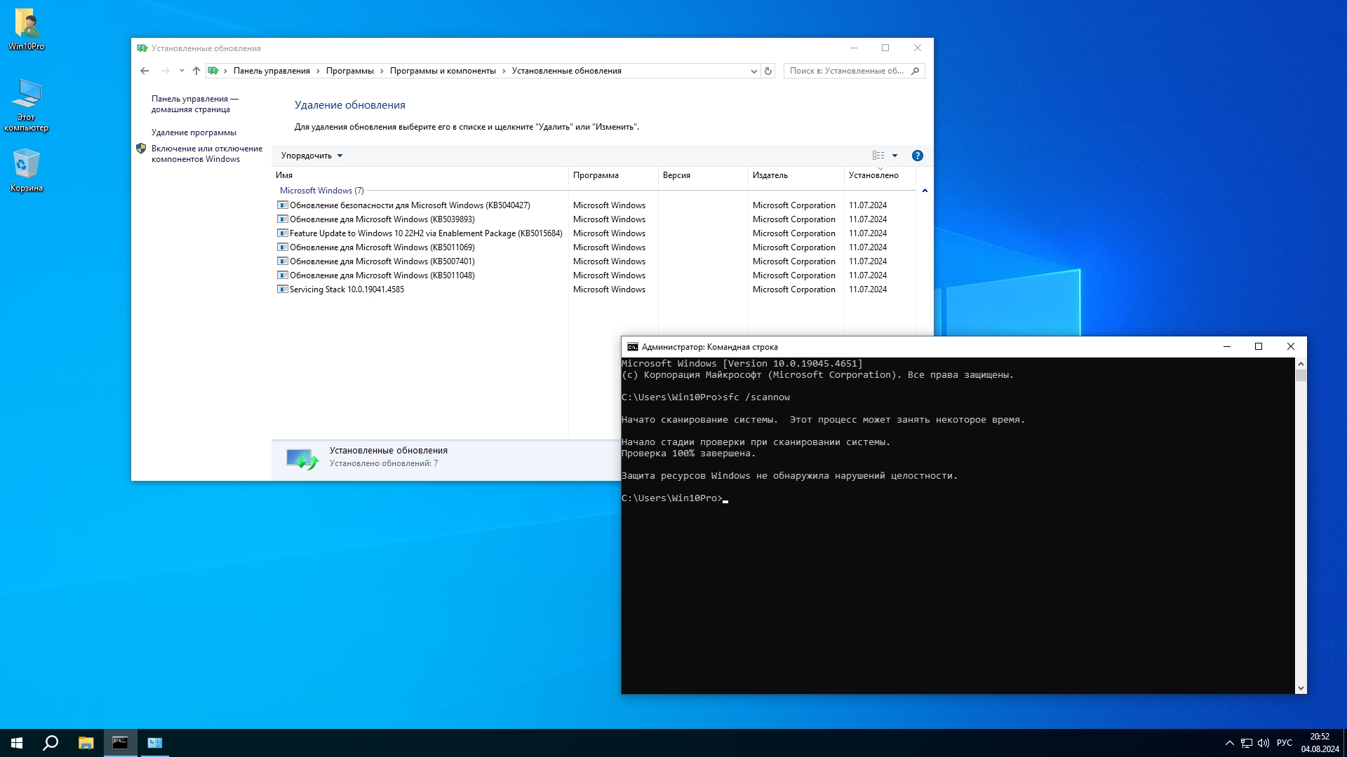 Версия: Windows 10 Professional x64 22H2 Build 19045.4651