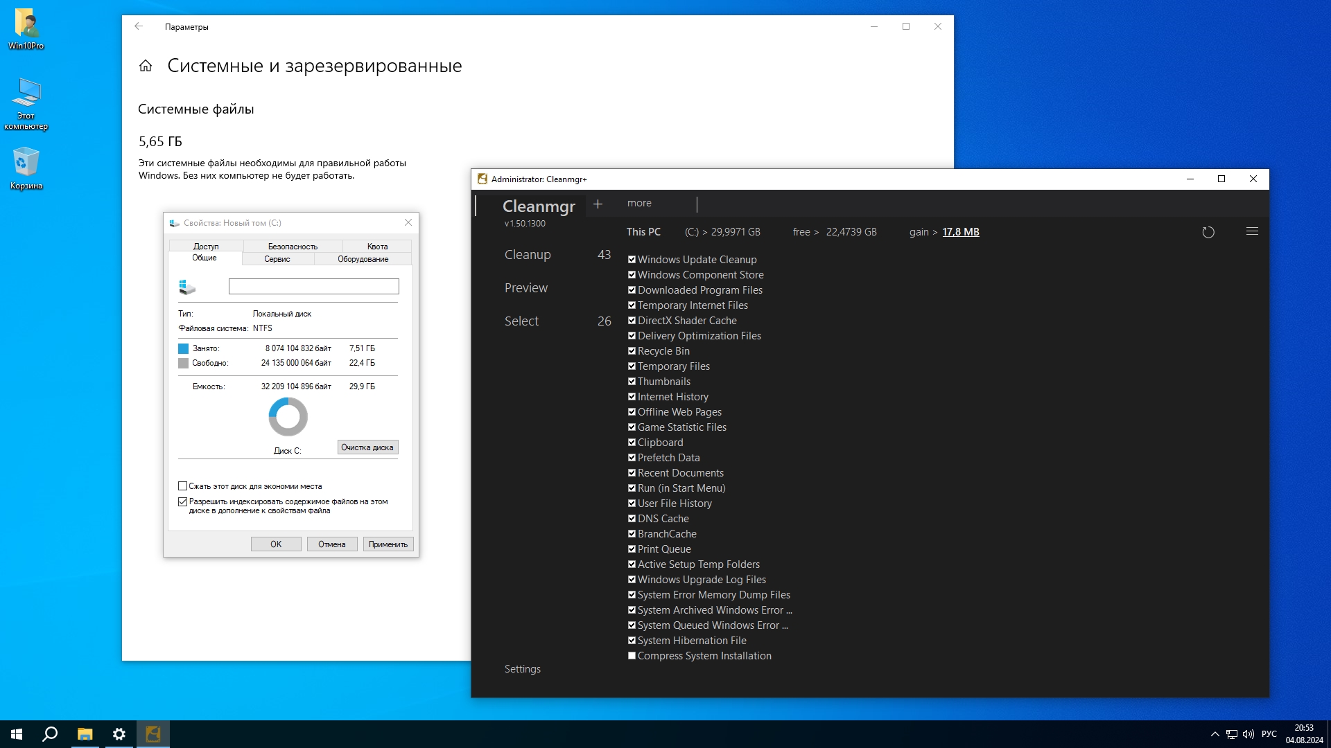 • Cleanmgr+ («очистка диска»): Доступен по пути: меню Пуск > Средства администрирования Windows. Это усовершенствованная версия стандартного инструмента очистки диска, предоставляющая больше возможностей для удаления ненужных файлов и освобождения места.