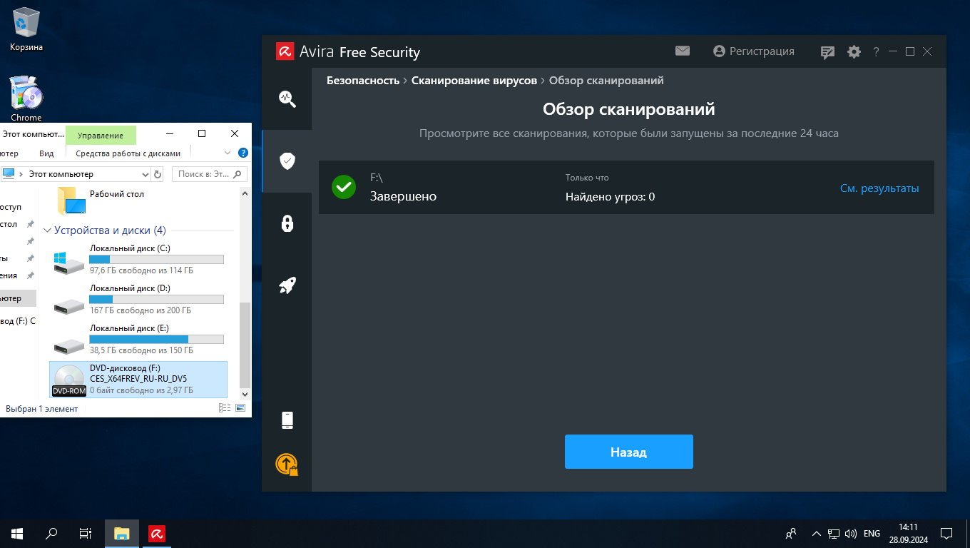 -Никаких рискованных сетевых настроек и т.д. не применялось. На этой сборке всё должно работать как надо, потому что ее конфигурация – простая, проверенная и надежная. Всё, что способно работать на 1809 LTSC – будет успешно работать и на этой сборке. Также можете обратить внимание на то, что система абсолютно чистая, проверена тестами, вирусов и угроз нет.