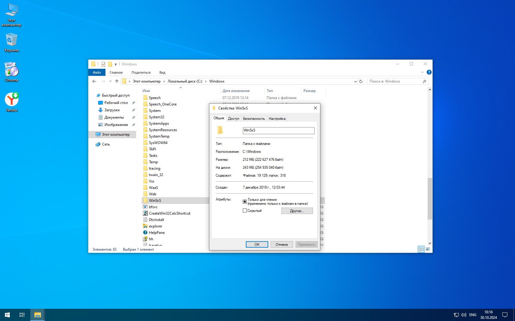 Параметры образа Windows 10 Pro 22H2 super lite сборка 1.63 ГБ на русском 64-бит: