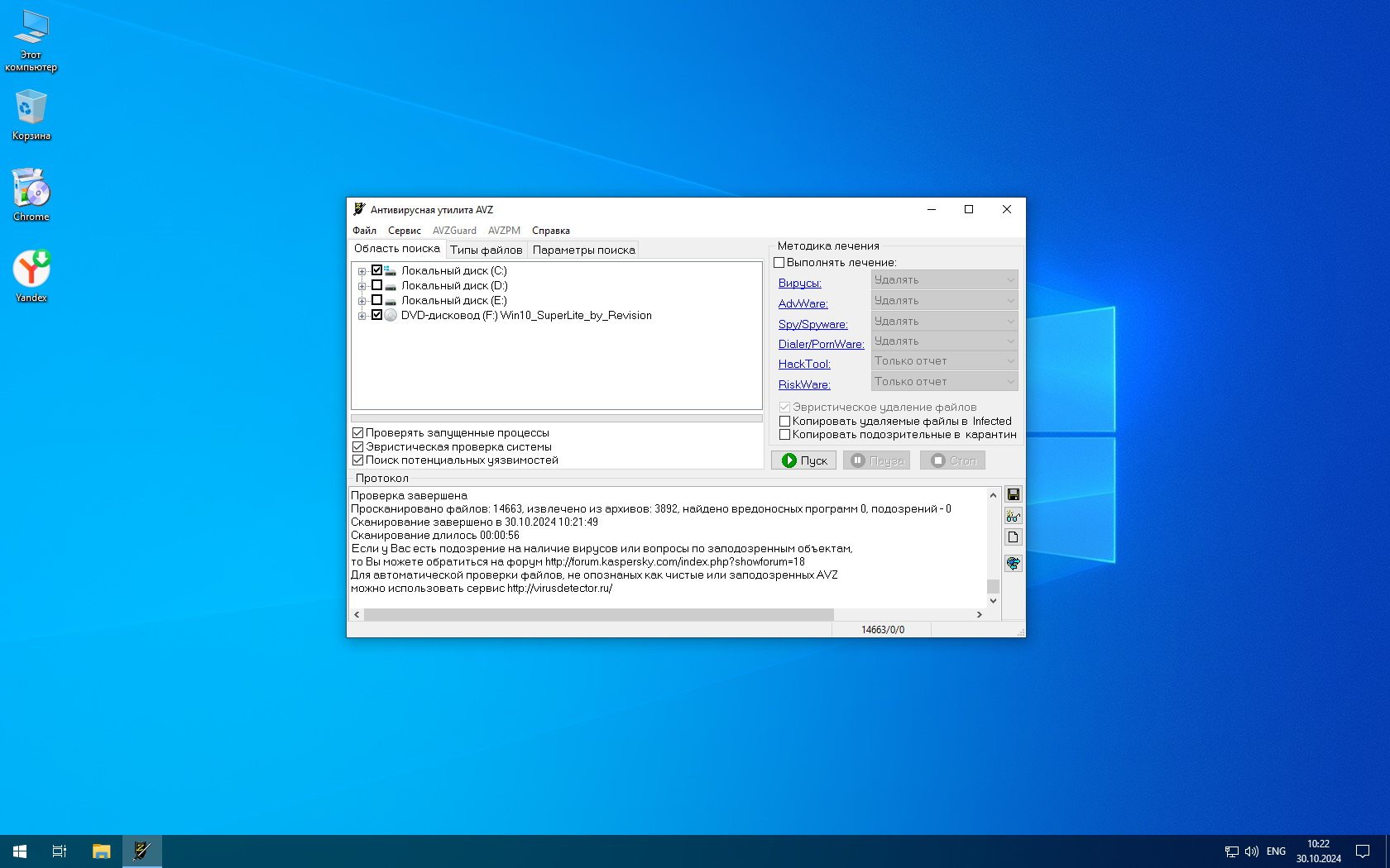 Сборка выполнена из актуального оригинала Windows 10 22H2 - без использования аудита. Сначала лишние компоненты были удалены при помощи средств Dism, затем в Total Commander был убран хлам из WinSxS. Всё-таки, у супер-лайт сборок с урезанной WinSxS с запрещенным WinUpdate есть свои плюсы. Файловая система не загромождена, дисковое пространство тоже очень экономно расходуется для Виндовс, сборка быстро загружается, ее можно без лишних временных затрат проверить антивирусами. Кстати, на сегодняшний день самые безопасные сборки – это сборки by Revision. Приложенное видео (а также все нужные инструменты) позволят вам самостоятельно сделать супер-лайт сборку с точно такими же характеристиками.