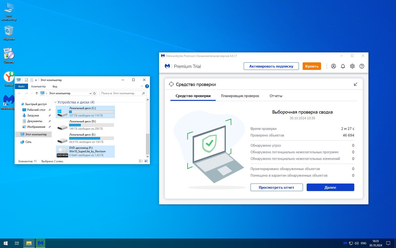 Не существует идеальной и универсальной конфигурации для супер-лайт сборок. Поэтому используйте систему по принципу – подходит она вам или нет. Неопытные пользователи иногда требует от супер-лайт сборок такого же функционала, как от оригинальной системы. Это очень наивно, когда система гораздо меньше официального образа, и при этом существенно лучше справляется с большим спектром задач. Разработчикам by Revision объективные и полезные комментарии – чтобы улучшать супер-лайт сборки в будущем. В ISO образах допускается установщик браузера и некоторые пользовательские изменения по умолчнию для браузера Chrome, каждый может без проблем изменить настройки браузера на свои предпочтительные. Все авторские сборки перед публикацией на сайте, проходят проверку на вирусы. ISO образ открывается через dism, и всё содержимое сканируется антивирусом на вредоносные файлы.