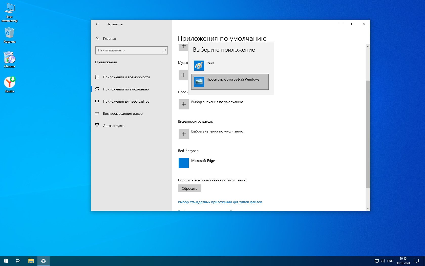 -Просмотрщик разрешен в системе, но если он вам нужен в качестве основного средства просмотра фото, то укажите его в «Приложениях по умолчанию».