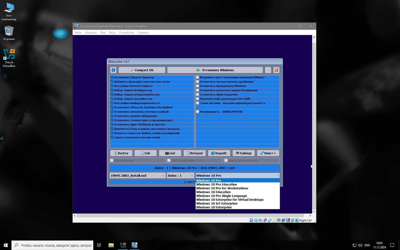 Параметры образа Windows 10 Compact SuperLite 22H2 iso 1.60 ГБ на основе by Flibustier: