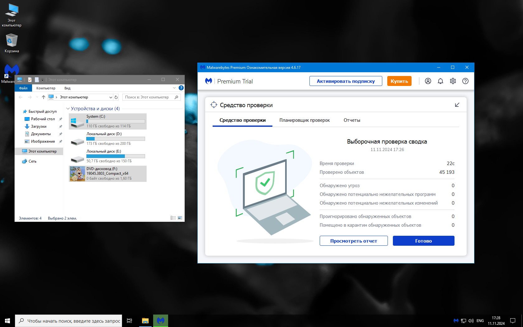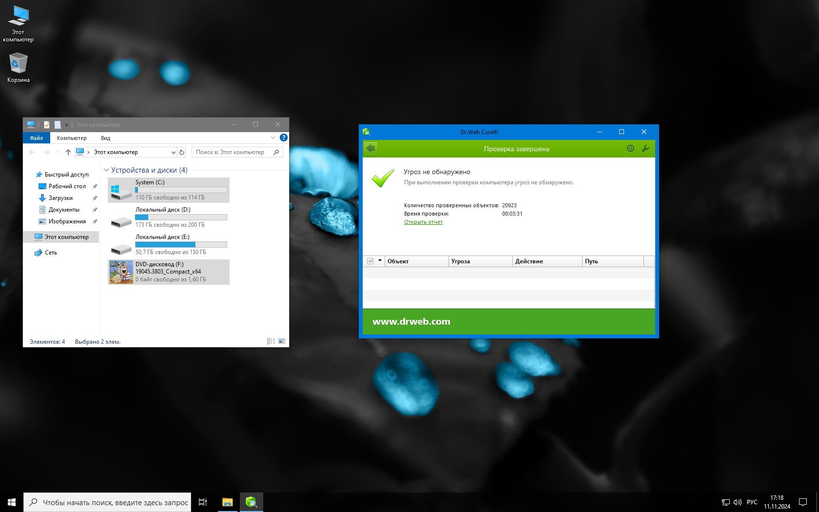 Microsoft настолько стала захламлять свои системы, что всё больше пользователей стремятся к минимализму на своем ПК. Главное – чтобы в системе было всё нужное, а не всякий хлам (непонятно для каких целей). Поэтому лайт сборки всегда обеспечены спросом, особенно, если они качественные. Оценка этой сборке от команды Revision – 10/10, т.к. она прекрасно обустроена для пользователя, кроме того, бесспорно обладает повышенной производительностью и безупречно прошла антивирусную проверку. На этой сборке ваш ПК будет работать очень тихо, эффективно и быстро. Даже сам процесс установки буквально пролетает в считанные минуты, не нагружая абсолютно компьютер. Пользоваться Windows 10 Compact SuperLite после тяжеловесных сборок (особенно, Виндовс 11) и оригинальных систем – это как небо и земля. Всё нужное есть, ведь конфигурация Compact подходит более, чем для 90% пользователей. Система идеальна не только для домашних юзеров и геймеров, но также и для тех, кто занимается серьезной профессиональной деятельностью за ПК.
