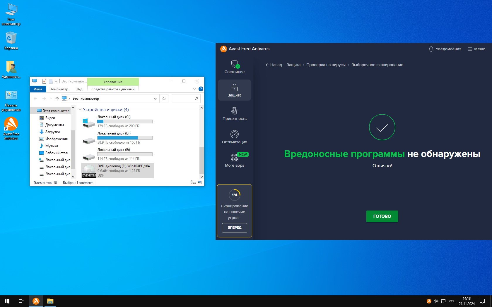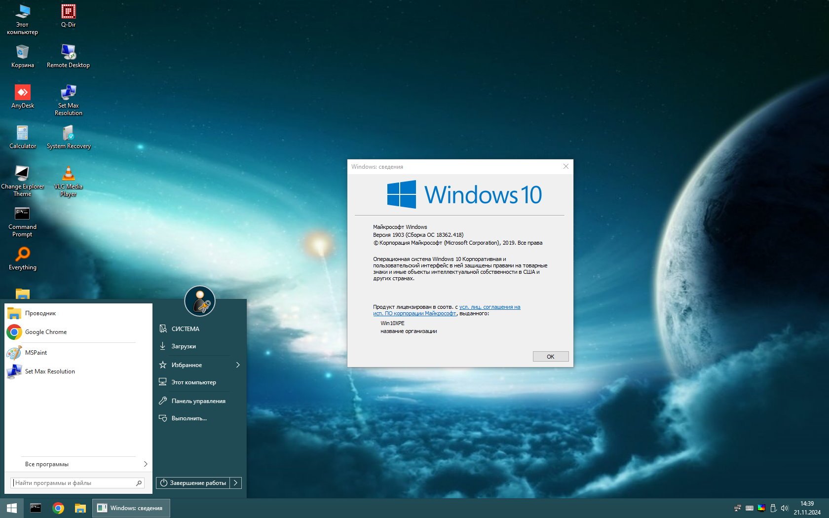 Версия: Windows 10 (v.18362.418) живая система Live PE для USB-флешки