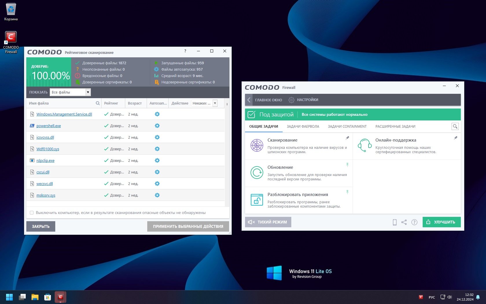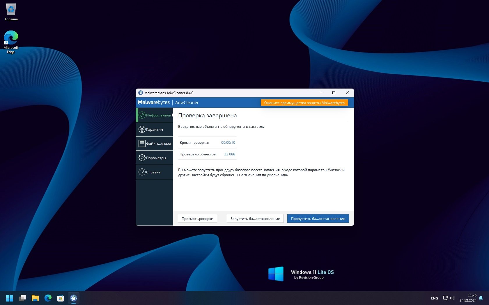 - Выключена телеметрия, настроена конфиденциальность, удалены/отключены вредные задания Планировщика.