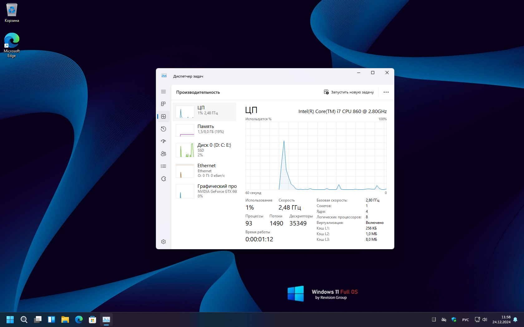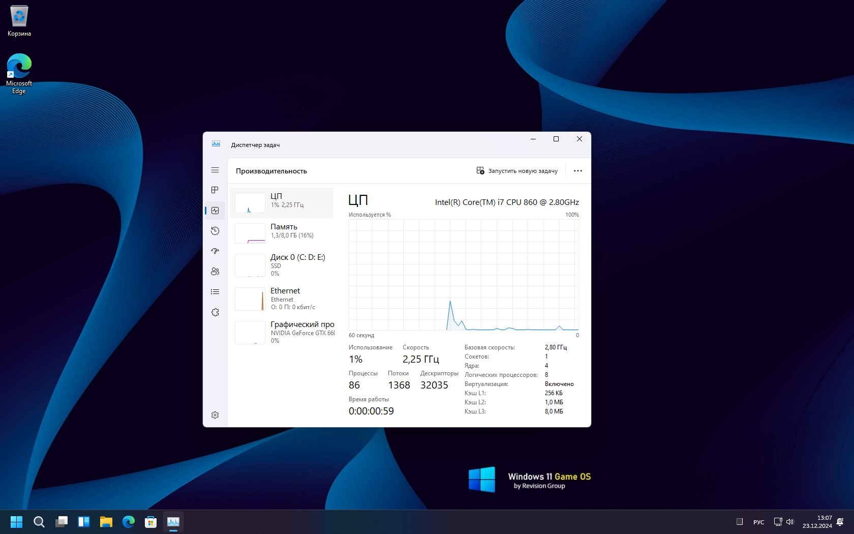 Системные требования Win 11 23H2 FullOS, GameOS, LiteOS by Revision: процессор 1+ ГГц (х64), ОЗУ 4+ ГБ, пространство 64 GB, DX11-видеокарта. Наличие TPM2/UEFI не проверяется и не требуется.