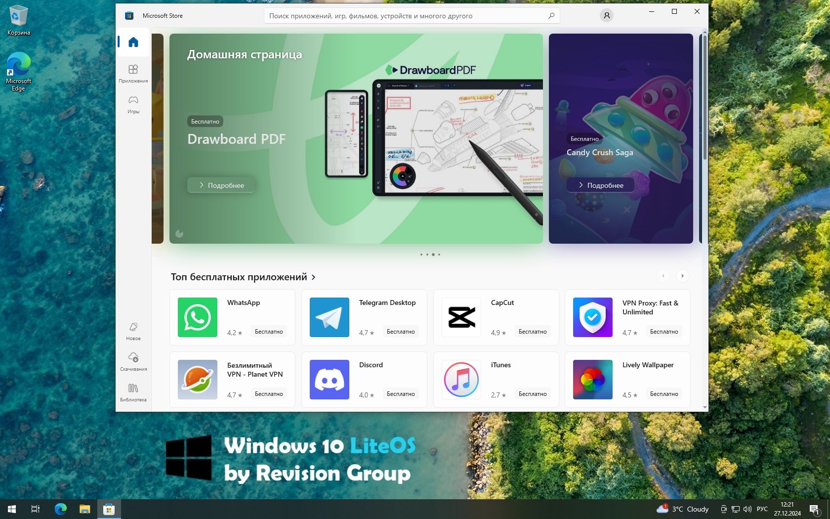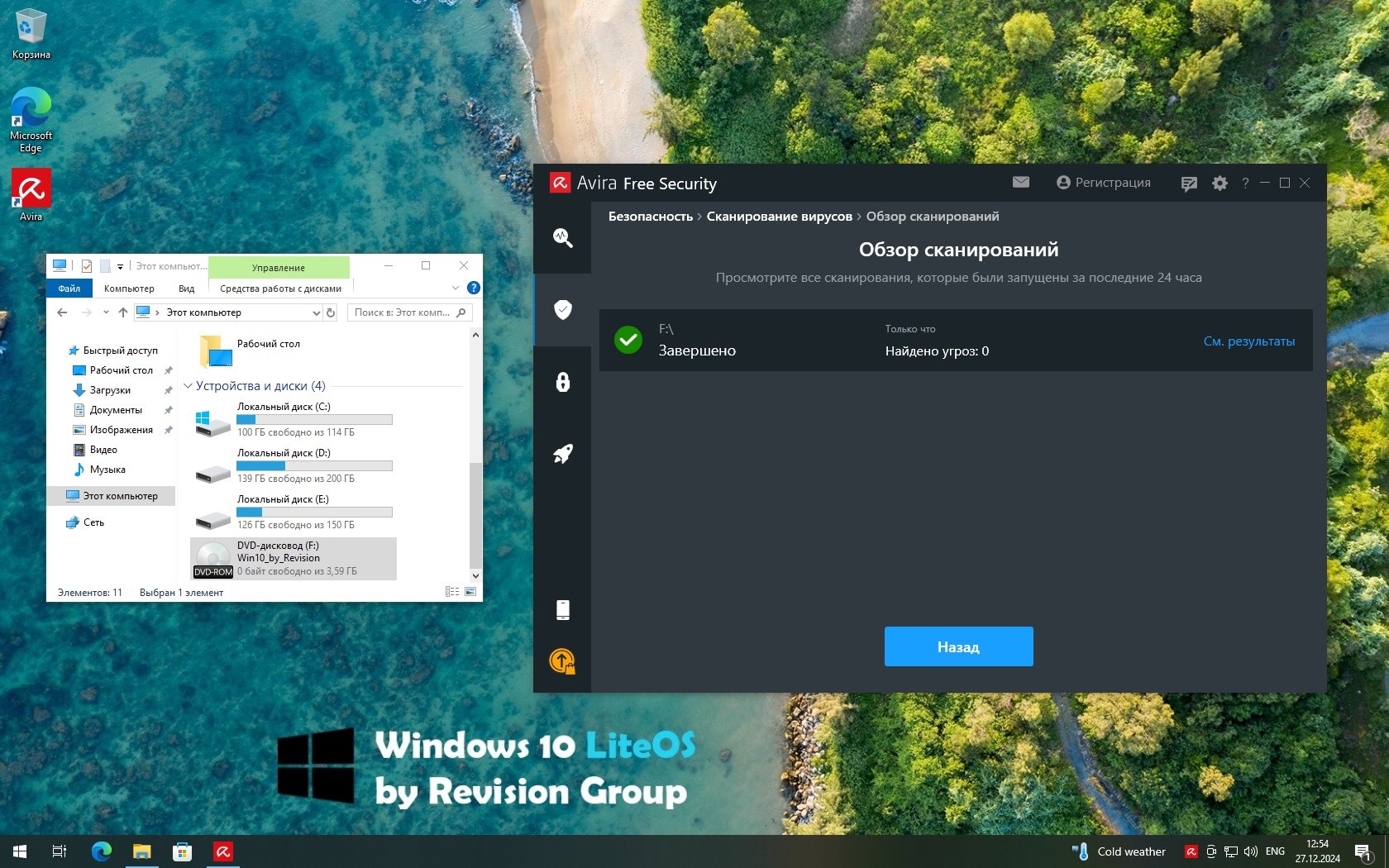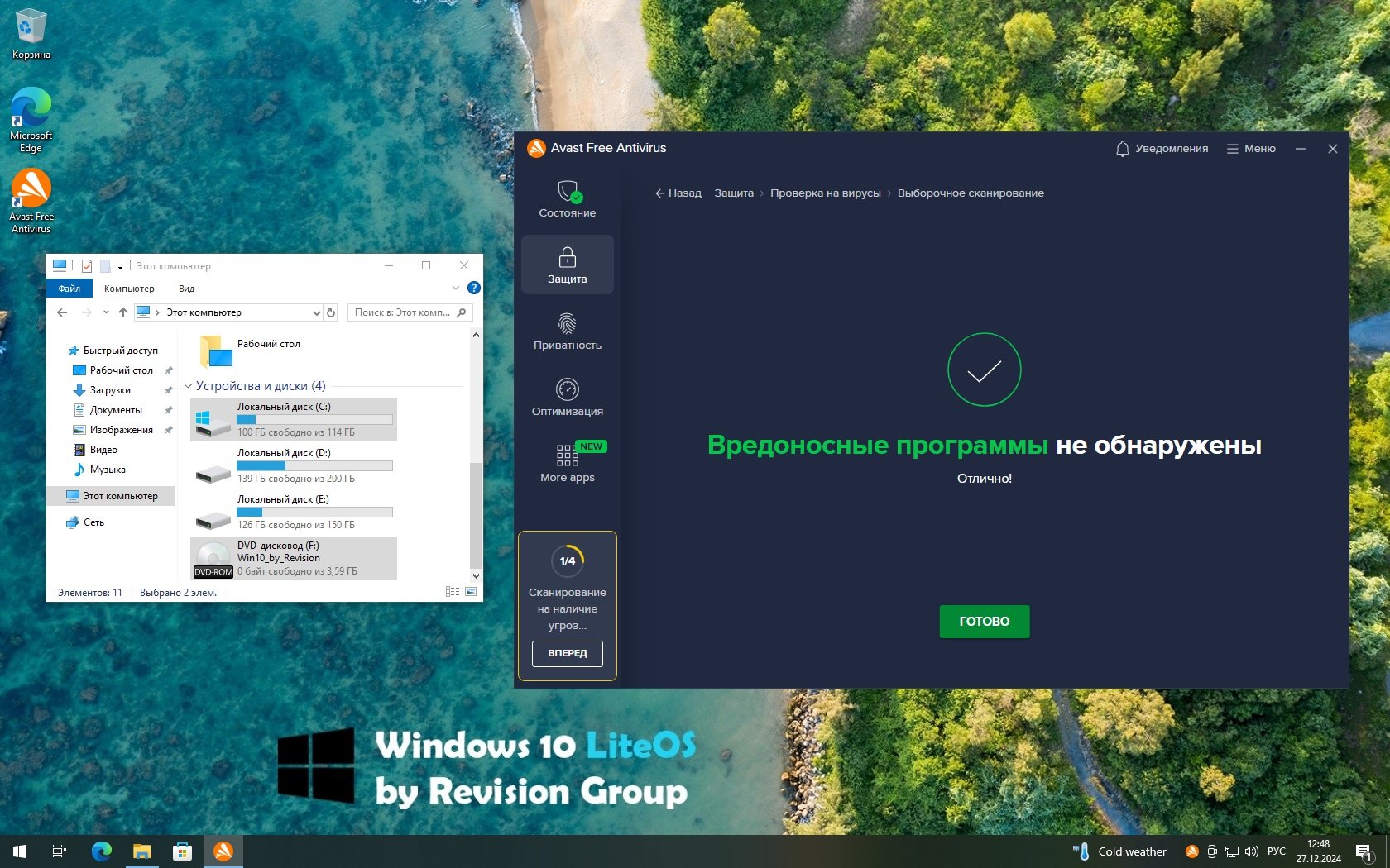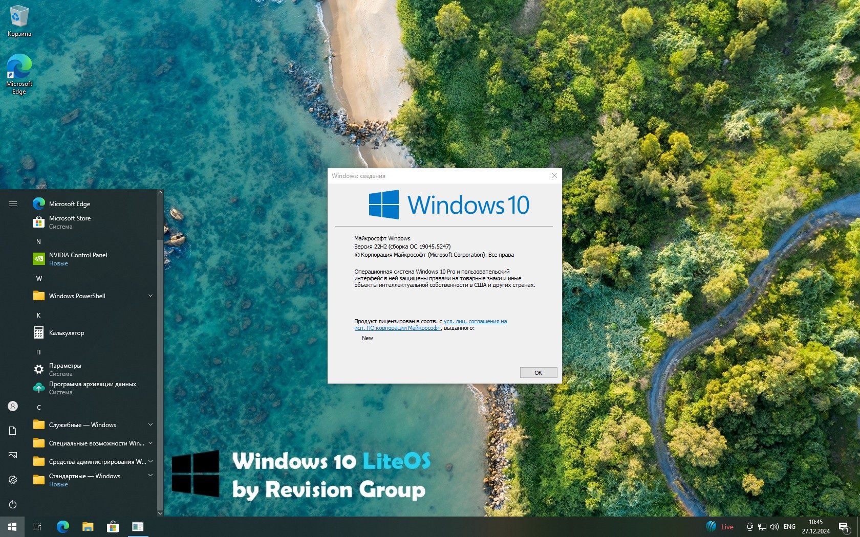 Виндовс 10 с обновлениями до 2025 года и лаунчером от Revision Group. На выбор при установке - версии FullOS, GameOS, LiteOS и оригинал - скачать iso образ 3,59 ГБ через торрент. Разработчики by Revision продолжают линейку сборок с RGLauncher! На этот раз – для вас Windows 10 (тоже business-версия) с несколькими вариантами установки + оригинал + активация (по желанию). Мы решили сократить немного размер оригинального install.wim, убрали из него WinRE.wim и сжали его в esd-формат. Именно поэтому размер iso-образа сборки получился существенно меньше, чем Win 11 с RGLauncher. Также поставлены другие обои, а сам установщик оставлен тот же самый. На Windows 10 по-прежнему очень много людей работают, несмотря на то, что срок ее поддержки завершается уже в наступающем 2025 году (кроме LTSC/IoT LTSC). Основная задача линейки сборок с RGLauncher – комфорт пользователя ПК. Изначально при установке у вас есть выбор версии сборки + выбор редакции (с возможностью безопасной активации любой из них). Самый ненужный хлам Microsoft убирается во всех версиях (кроме варианта установки оригинальной Виндовс). Напоминаем, что версия Full OS - с Защитником, версия Game OS – оптимальна для любых игр (и содержит Xbox), а версия Lite OS – самая незащищенная, но зато самая легкая в работе версия. Поиск и Магазин оставлены во всех версиях, т.к. многие пользователи нуждаются в этих компонентах. Очень важно: Edge легко и просто удаляется в «Программах и компонентах» в данной сборке (точно так же как любая установленная программа). Поэтому мы его даже не вырезали, - пусть каждый самостоятельно решает сам – нужен ли ему Edge или нет.