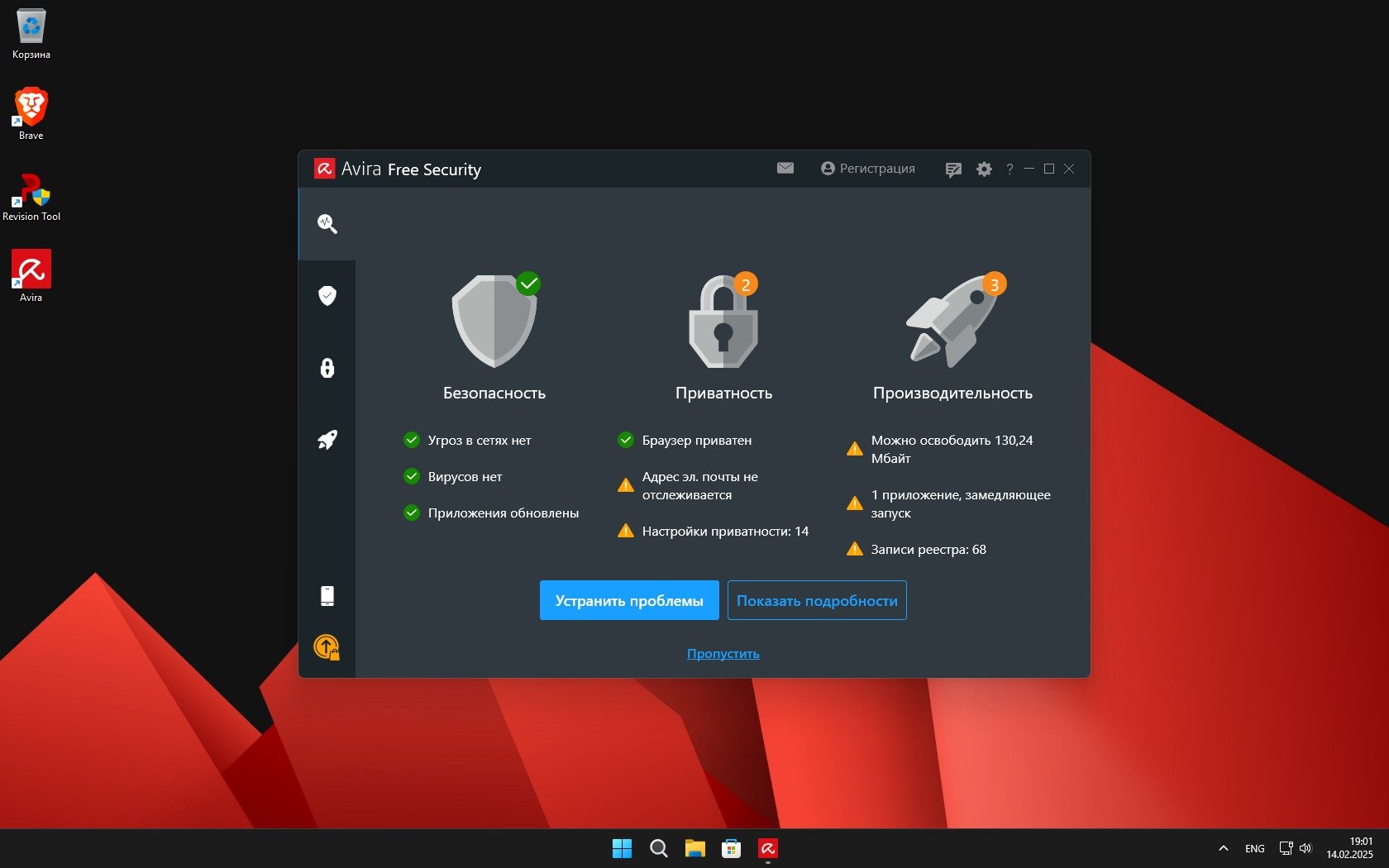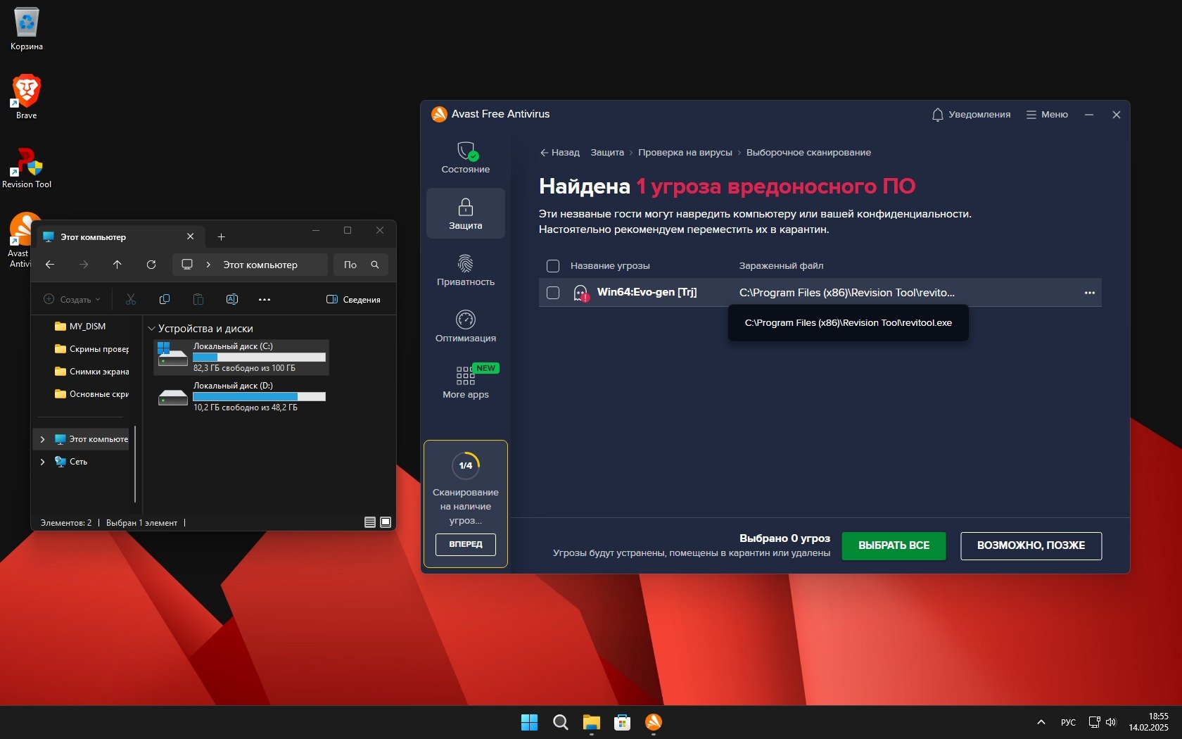 - Avast ругается на Revision Tool, но в этом тоже ничего нет удивительного, т.к. прога эта – неподписанная и использует супер-права в системе – для ее настройки.