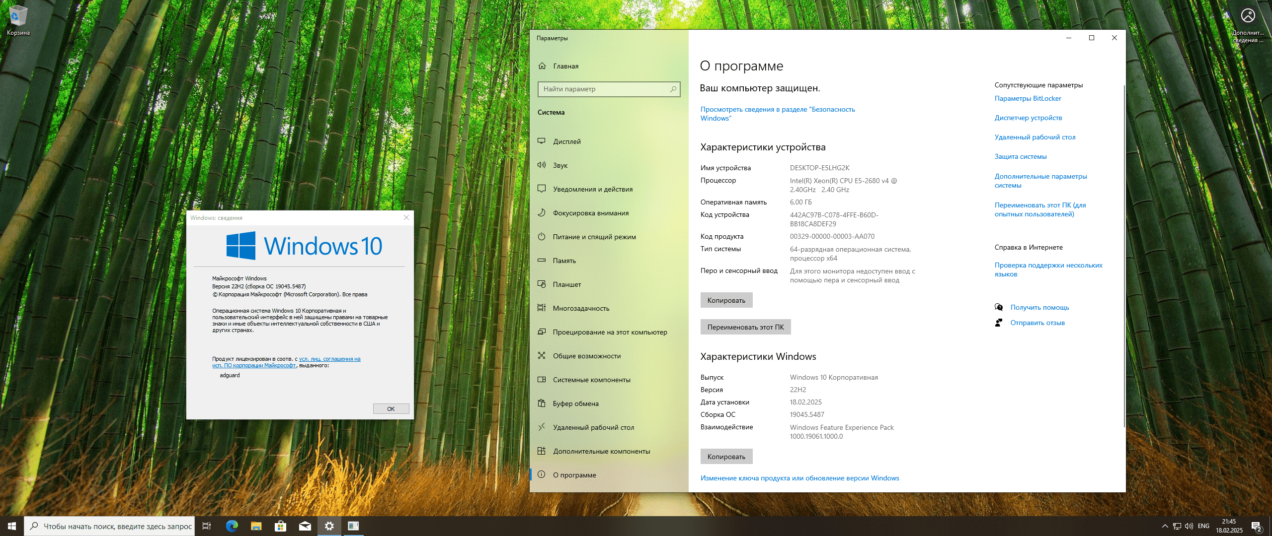 MSDN Windows 10 22H2 19045.5487 Оригинальные образы от Microsoft 2025 на русском