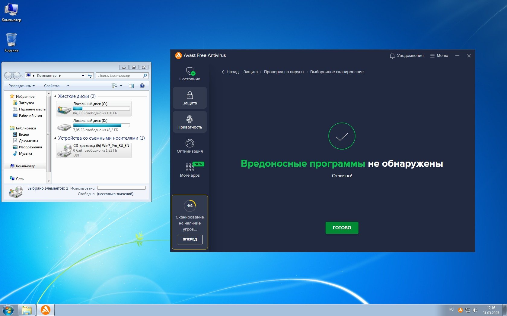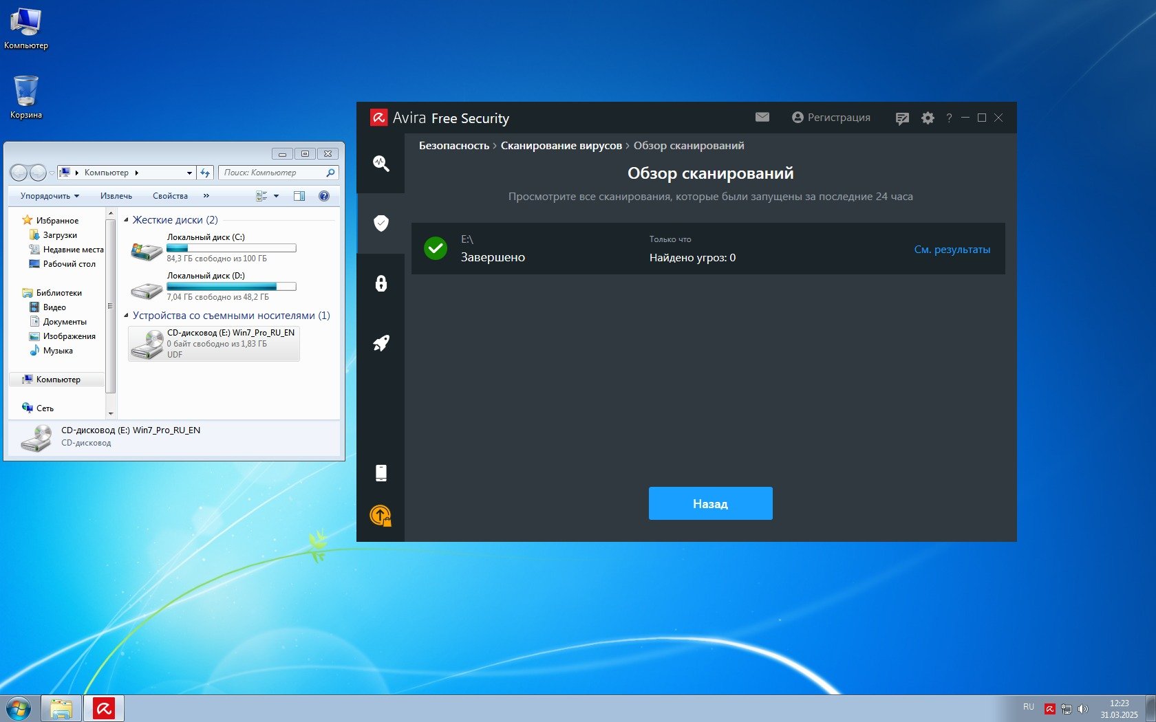 Windows 7 Pro урезанная Lite сборка RU+EN с обновлениями 2025