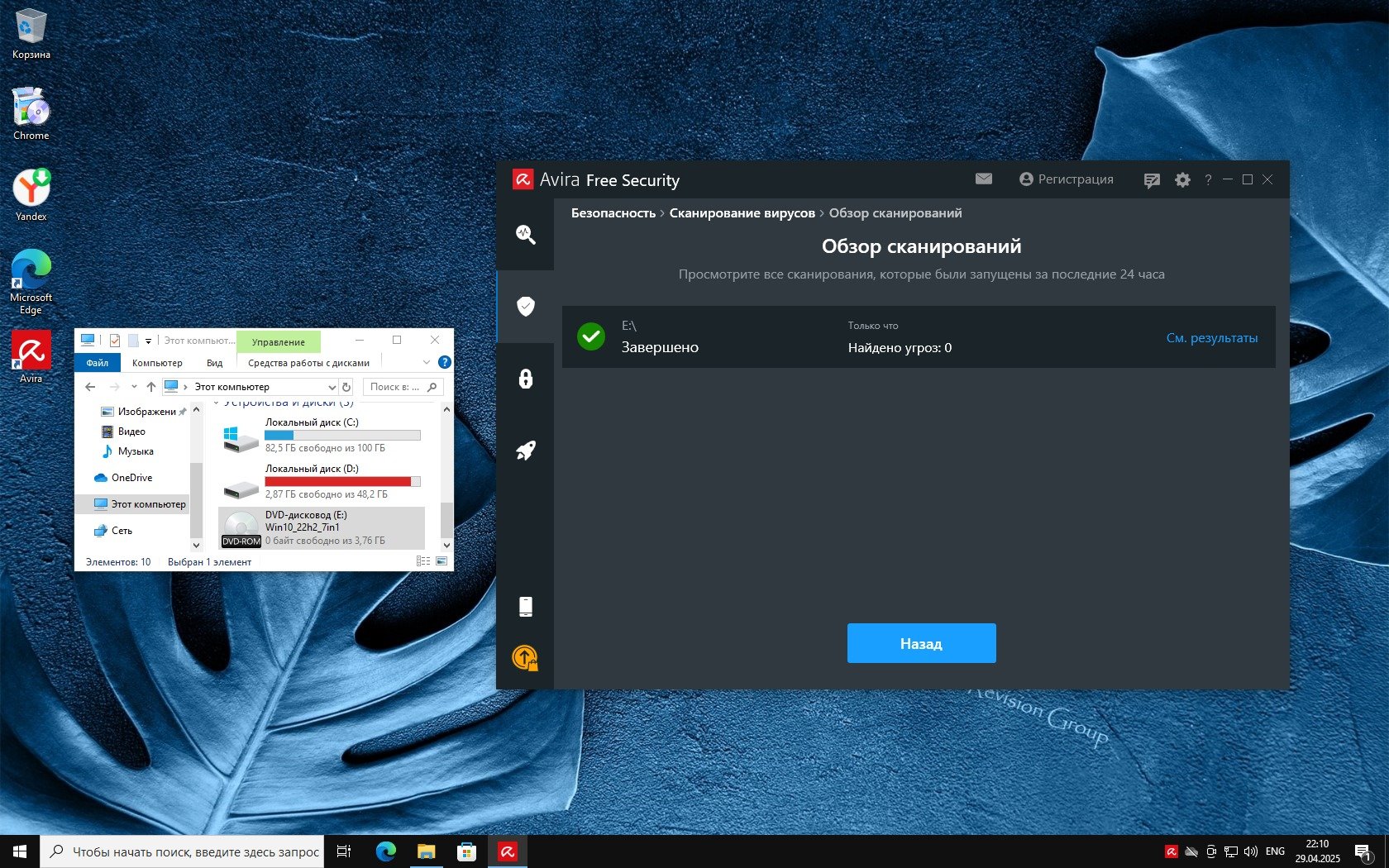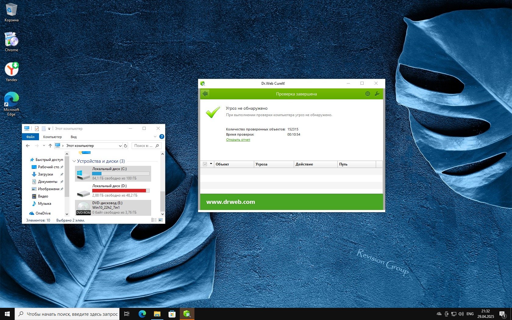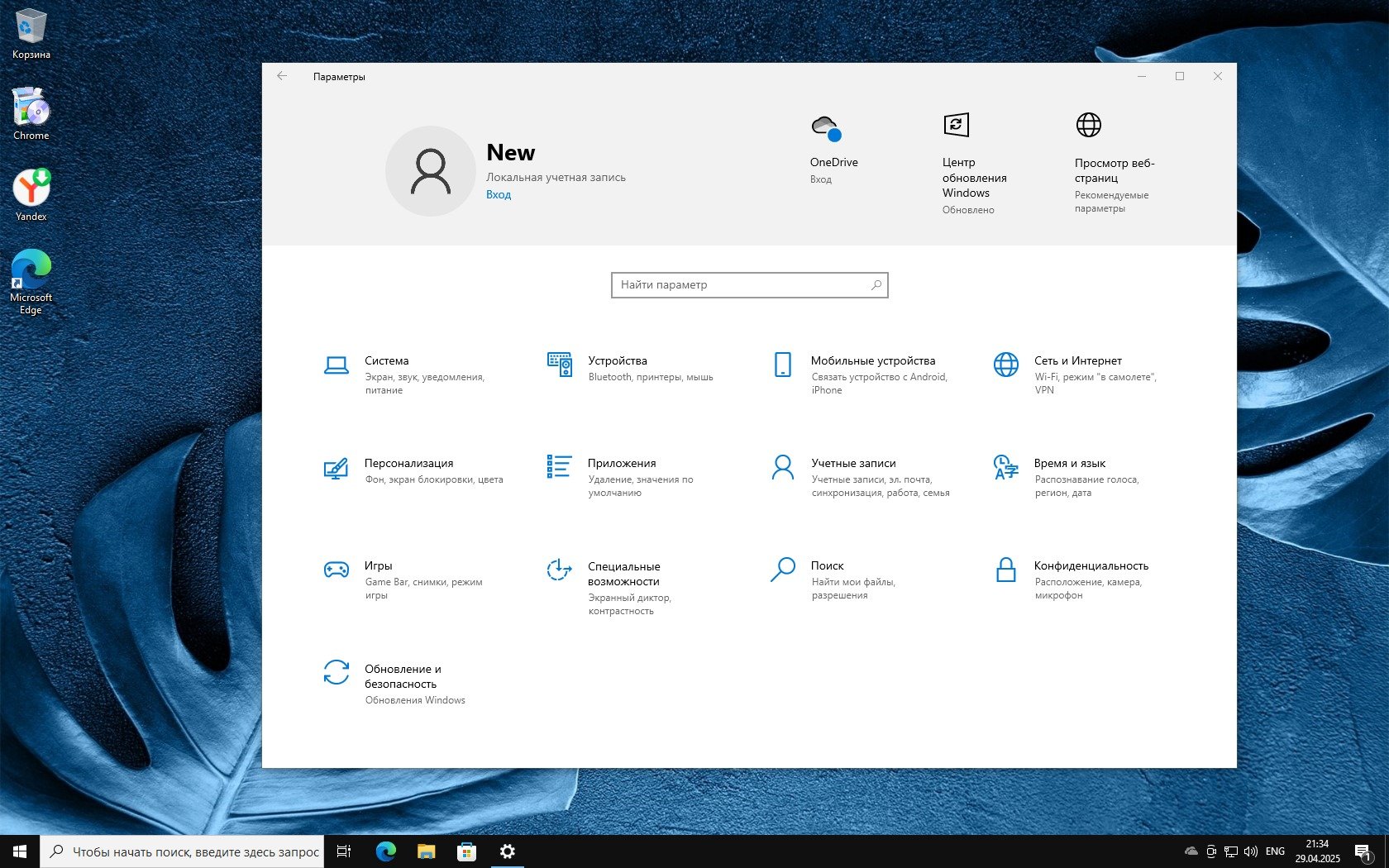 Поскольку в сборке сохранен стандартный Эдж – ни один из этих браузеров не будет устанавливаться автоматически. Инсталлировать их или нет – строго по желанию. Конечно, имеющийся Эдж – объективно не лучший браузер для Рунета, потому что Эдж больше адаптирован для показа рекламы и заработка Microsoft. Тем не менее, существует немало пользователей, которые считают, что именно Эдж – оптимальный вариант. А если он вам не подойдет – то всегда можете воспользоваться добавленными на Рабочими стол установщиками Яндекса и Хрома.