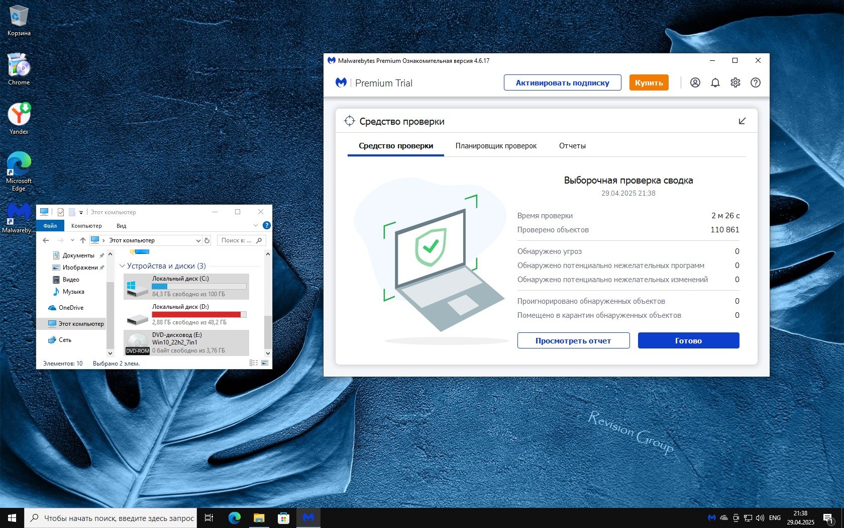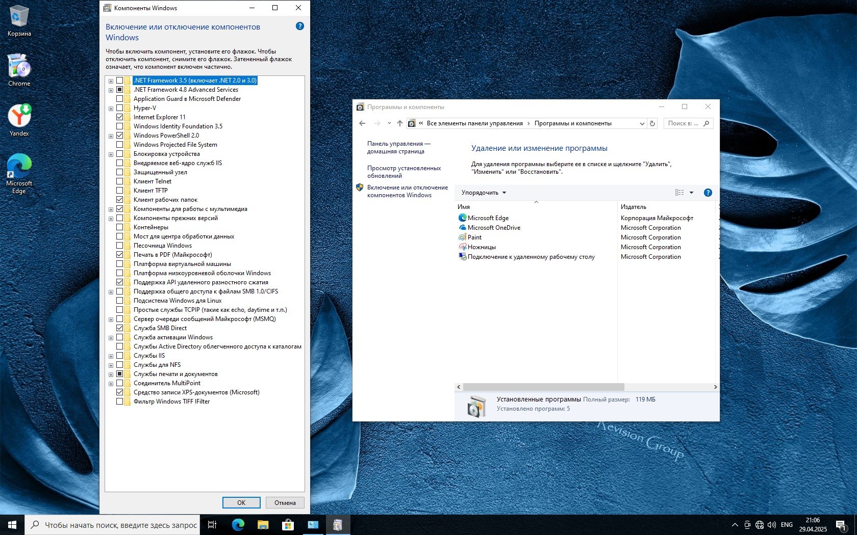 Именно такая конфигурация является самой нерискованной и оптимальной. Но кому-то, конечно, покажется, что в системе «слишком много лишнего» - для таких пользователей больше рекомендованы лайт сборки. Разработчики by Revision стремятся к тому, чтобы предлагались сборки на любой вкус – в том числе, и с минимальной обрезкой. И это как раз такая система, в которой практически ничего не вырезано. Дополнительно присутствуют установщики альтернативных браузеров, а Эдж при этом сохранен в сборке.