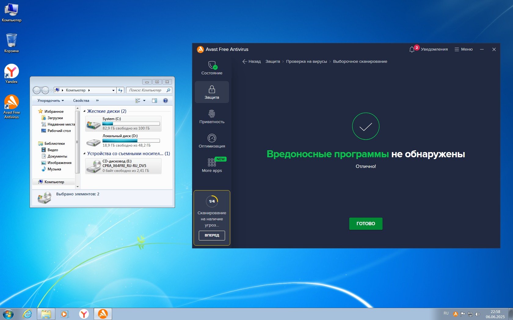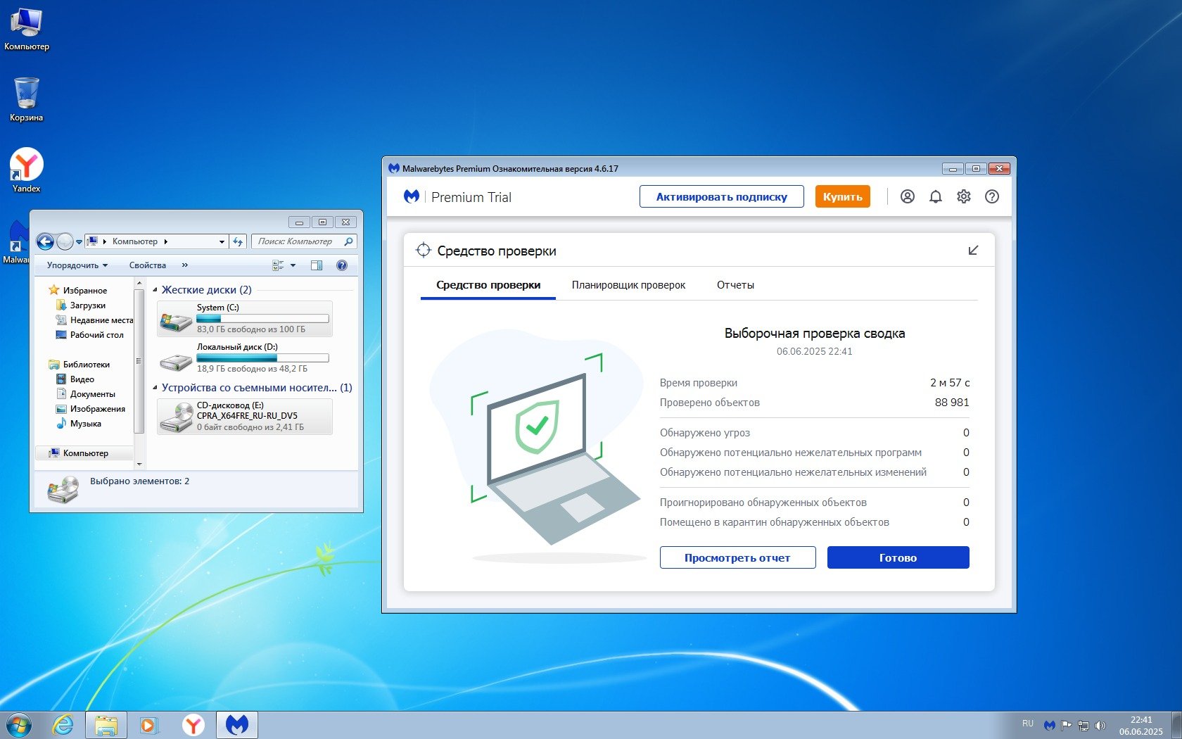 -Интегрированы Framework 4.8, 7-Zip архиватор, набор VC++, DirectX и совместимый с семеркой Яндекс-Браузер. Всё это будет установлено в системе изначально – сразу после первого появления Рабочего стола.