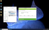 -Обустроен интерфейс (все нужные основные значки изначально на рабочем столе). Применены новые обои, а также изменена цветовая гамма Панели задач.