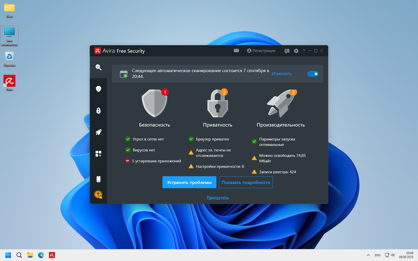 -Ярлык Restart Explorer (находится прямо в меню Пуска). Почему-то Avast негативно реагирует на этот безобидный ярлык – хотя в нем прописана всего лишь команда для перезапуска Проводника. Видимо, некоторые зловреды тоже используют эту команду, поэтому Avast и реагирует.