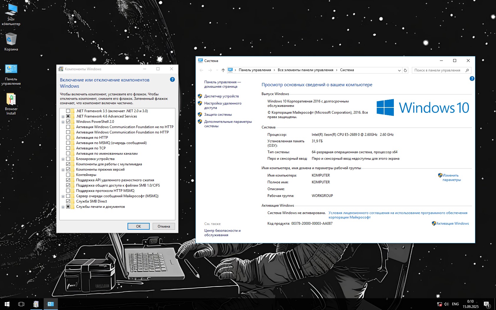 Параметры образа Windows 10 x64 на 1-2 ГБ ОЗУ • LTSB 1607 14393.8422 RU: