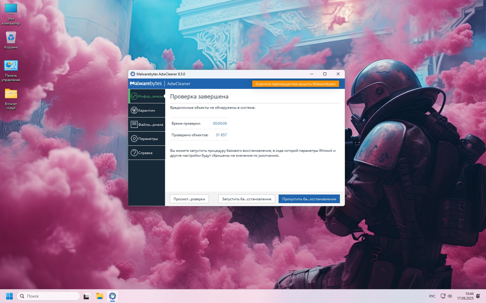 Запускали сканеры: Avast, Avira, Malwarebytes, DrWeb, Comodo, AdwCleaner — угроз 0.