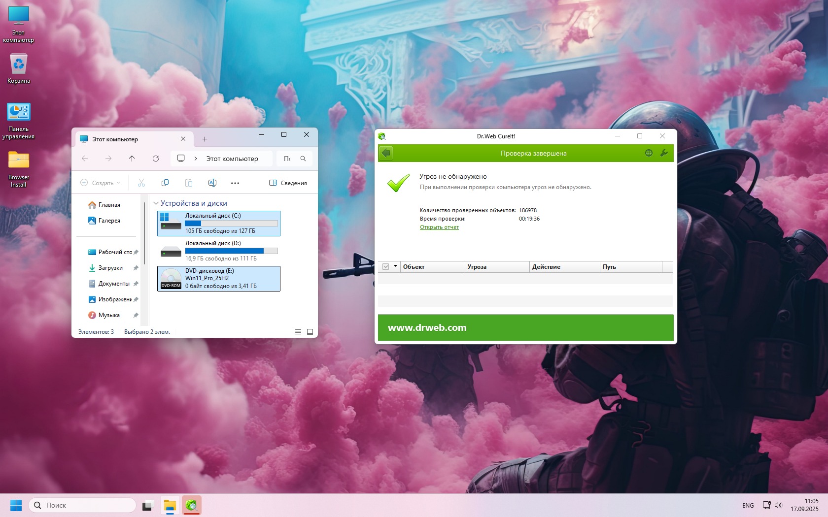 Системные требования урезанной Win11 Pro 25H2: процессор (x64/SoC) 2+ ГГц, RAM 4+ ГБ, место на диске 64 ГБ, DX11-видеокарта. Не требуются TPM2/SecureBoot.