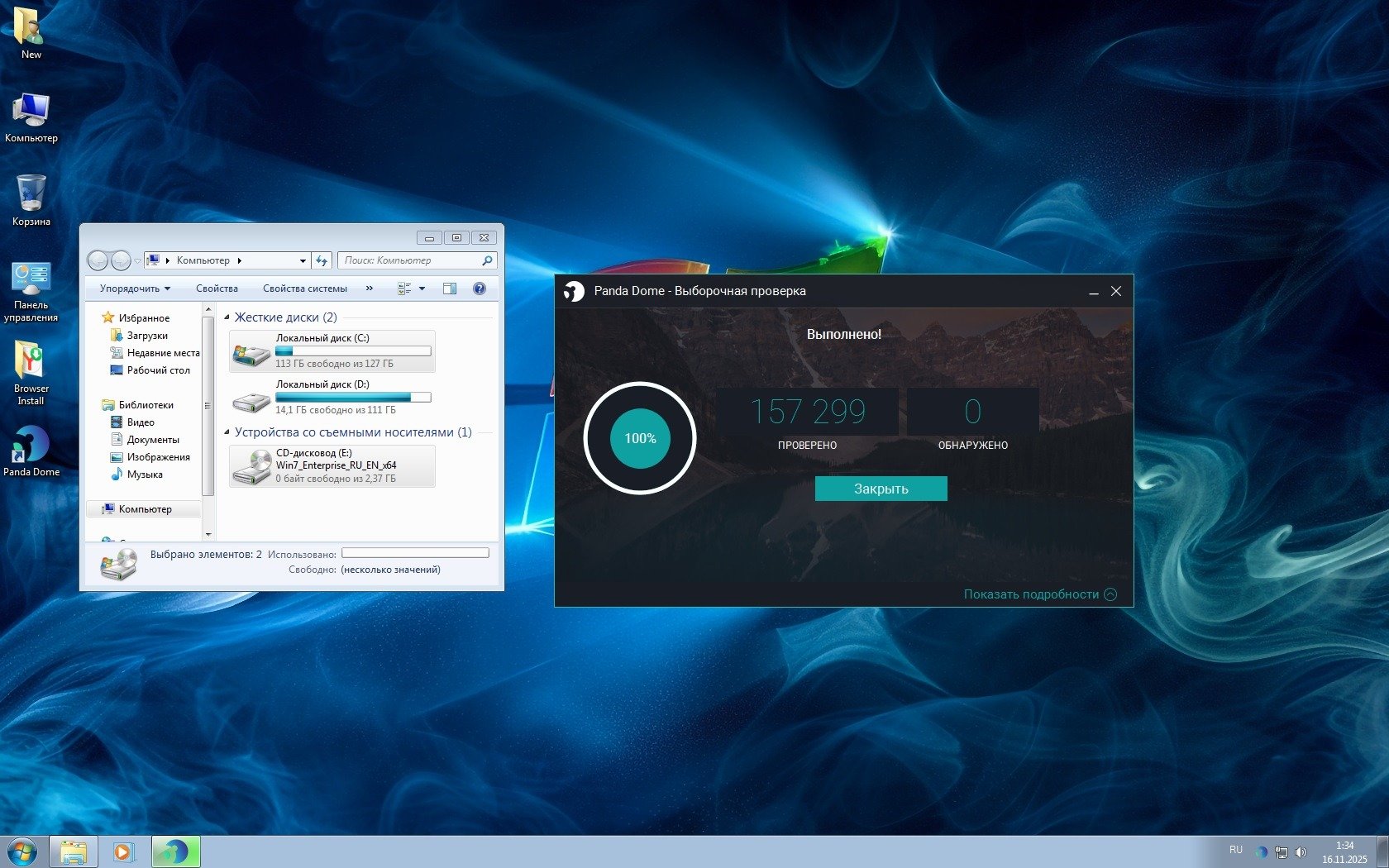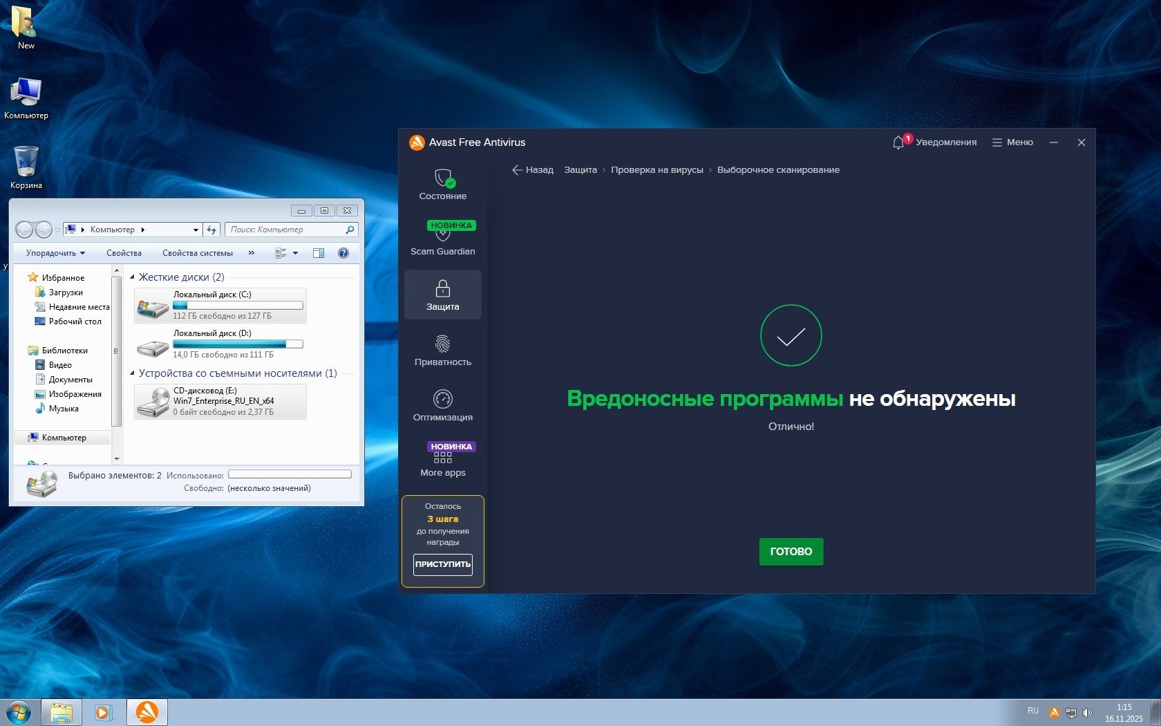 Она оптимизирована для современных условий: гибернация отключена, план питания выставлен на «Максимальную производительность», а Defender оставлен активным — при желании его можно выключить в пару кликов. Все ключевые службы и задания, замедляющие систему, вычищены, а WinSxS аккуратно очищен через DISM. В итоге — идеальный баланс скорости, безопасности и оригинального интерфейса Windows 7 без потерь.