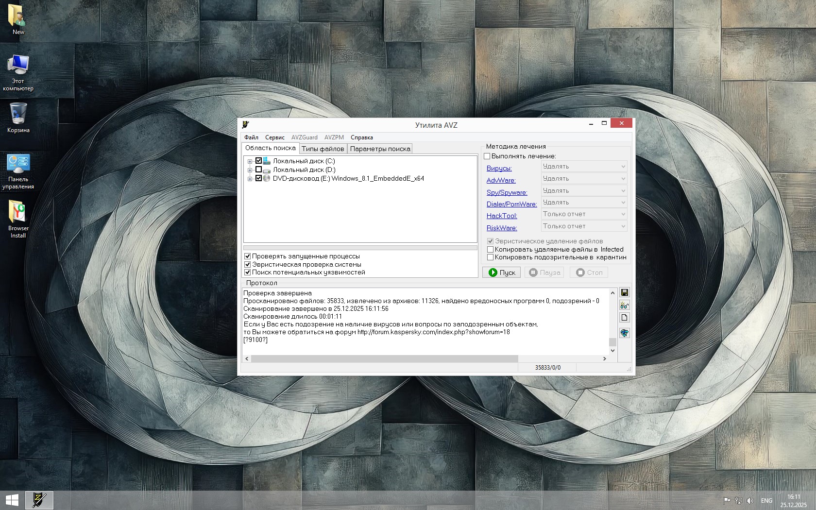 -Защитник. В отличие от новых Win 10, и Win 11, в Windows 8.1 удаление Защитника не мешает получать крупные обновления безопасности.
