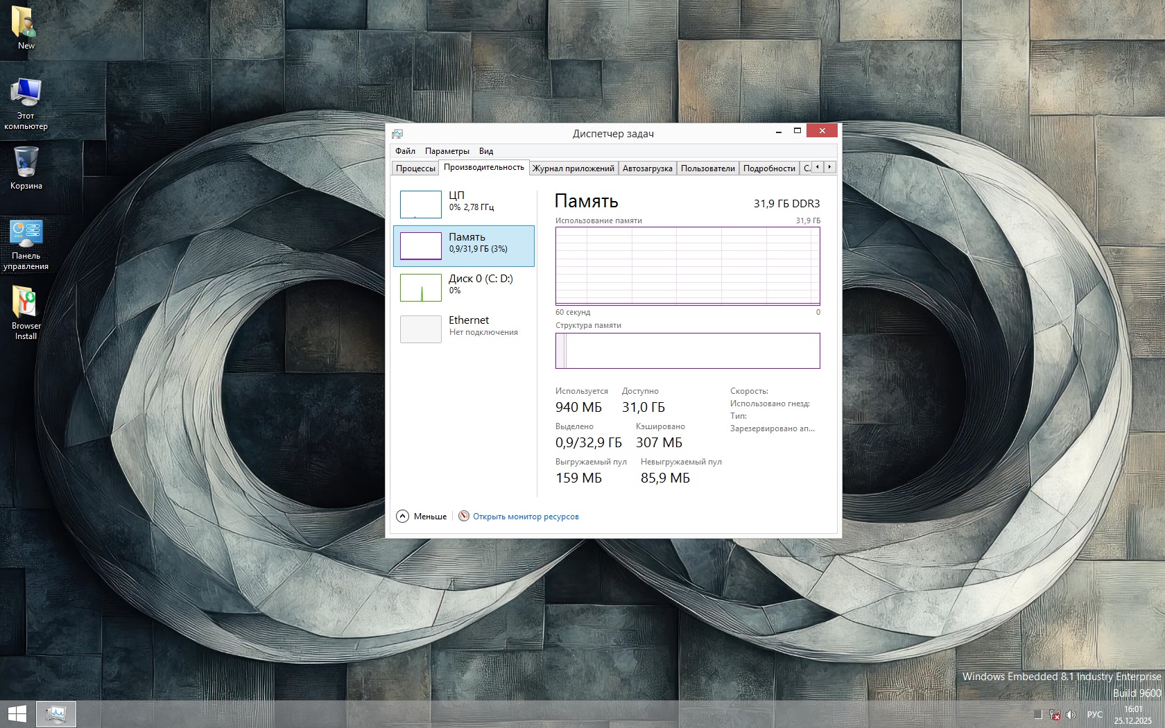 Отдельный и важный плюс —конфиденциальность. В Windows 8.1 отсутствует агрессивная телеметрия, а в чистой сборке система не следит за пользователем и не живёт «фоном своей жизнью». Это последняя Windows, где компьютер по-настоящему принадлежит владельцу, а не наоборот. Именно поэтому 8.1 — идеальный выбор для тех, кто ценит скорость, контроль и здравый смысл. Всего 25 процессов и меньше гигабайта оперативки со старту - говорит о многом.