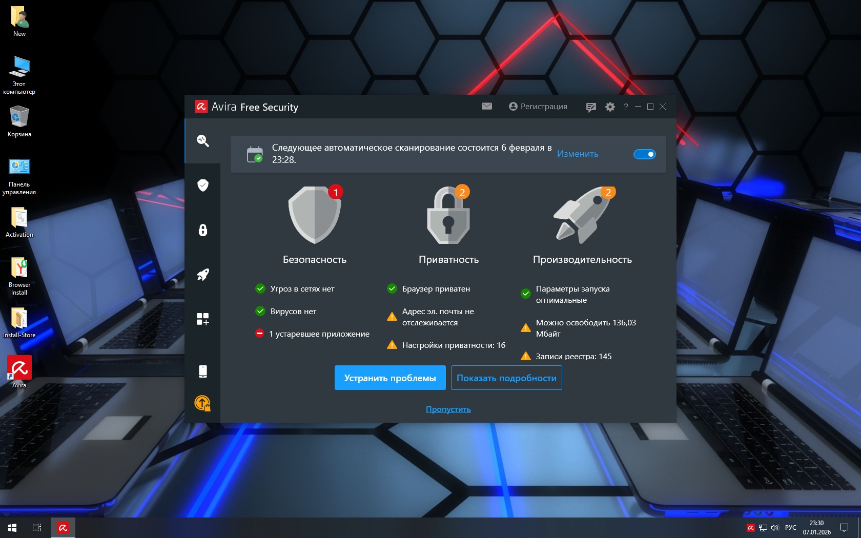 -Активатор, установщик Яндекса, установщик Магазина - на Рабочий стол.