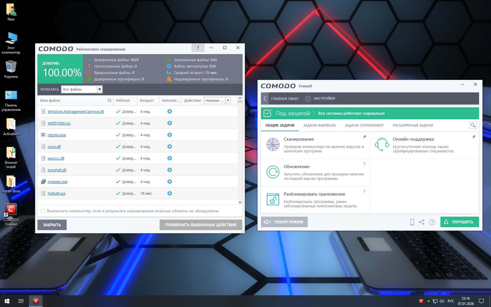 Брандмауэр в сборке выключен - как и Защитник, Смартскрин, UAC и некоторые другие защит. Любителям игр брандмауэр обычно не нужен, т.к. он может блокировать коннекты по своему усмотрению и раздражает запросами на подтверждение. Поэтому если повышенная сетевая безопасность вас интересует больше, чем комфорт в играх, - то можно установить любой сторонний файерволл и, по желанию, сторонний антивирус. Это чисто игровая сборка, хотя она может успешно использоваться и для повседневных задач, т.к. стандартный функционал IoT LTSC сохранен почти в полном объеме.