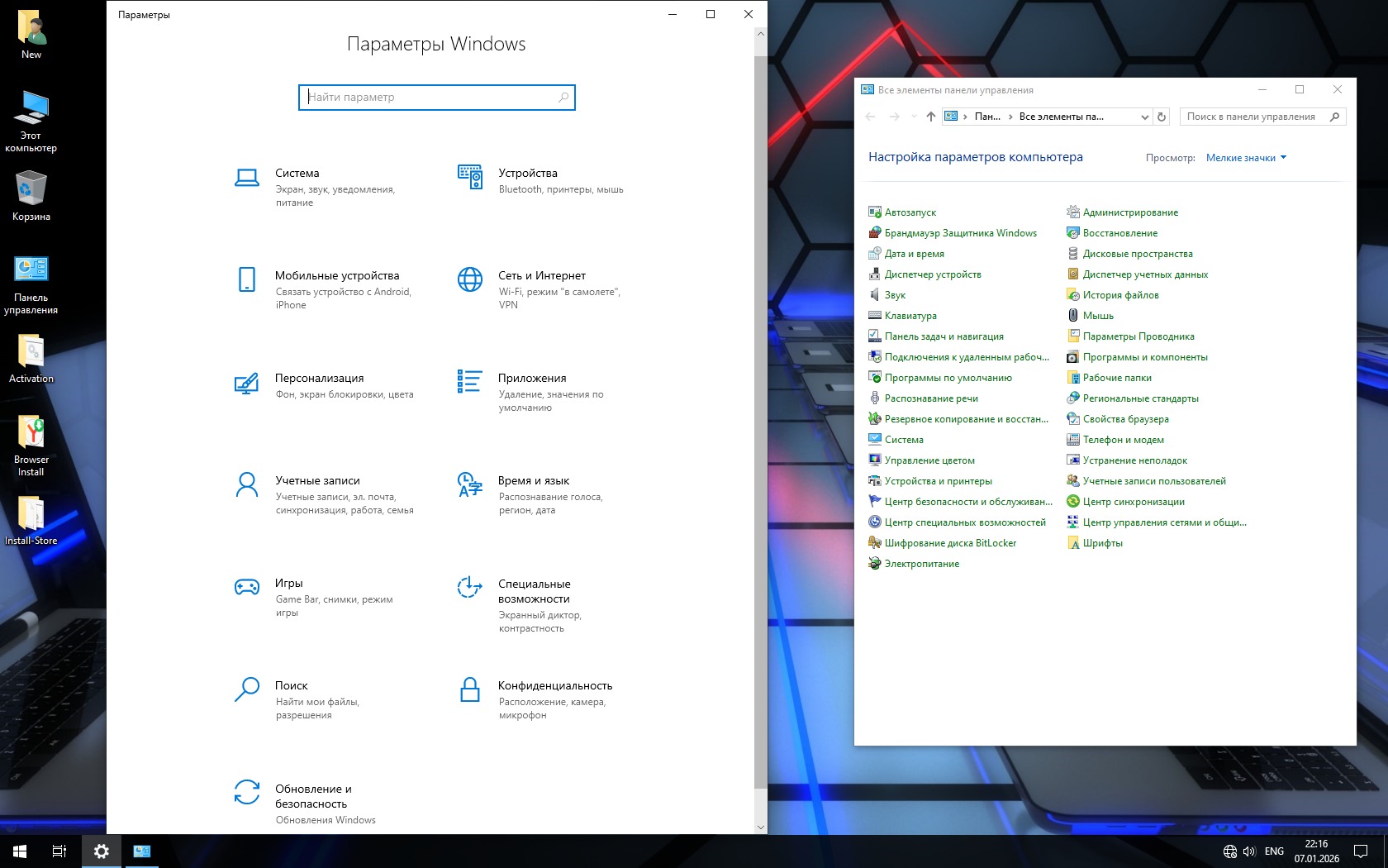 Скриншоты системы Windows 10 x64